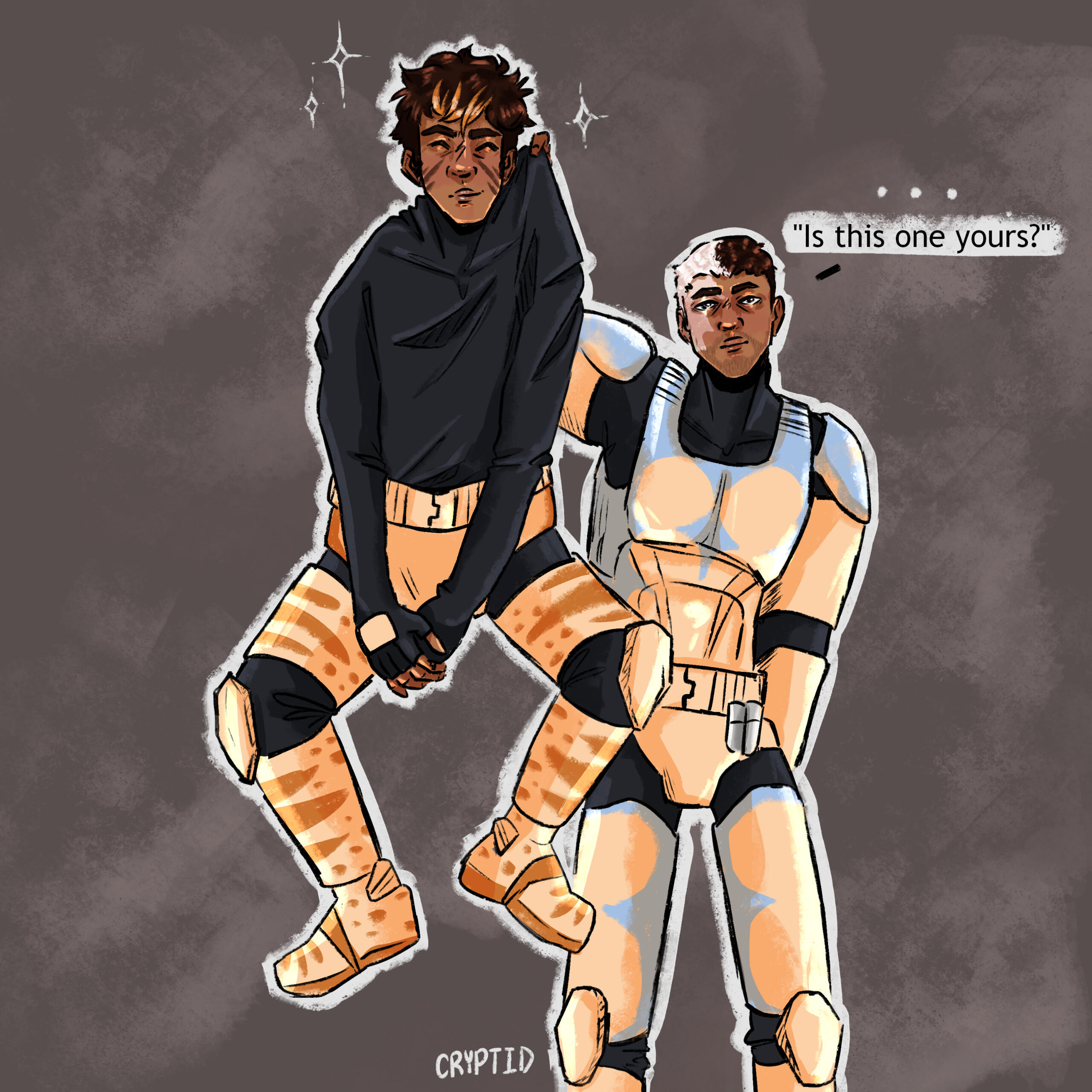 Loth had thought it some kind of gift from the Force that his brother had been transferred to the 104th. He couldn’t wait to find his batch brother. They hadn't seen each other since the horrible moment after passing ARC training together when they had reserved their assignments. And those moments in training hadn’t been happy memories. Not after losing Deck, Spring, and King.Loth finds that he and Trip are very different, when he finds him again. It is not a bad thing, per say, but they do not know each other the way they once did, when understanding passed between them easier than breathing. It takes time for them to get there again, and it does not look the same as it used to.Loth is less afraid of speaking his mind, and showing his care for his brothers outwardly. He has become a paranoid and feral dog, desperate for affection and snapping at anything he thinks could cause harm to him or the troops he is trying to protect.Trip had become tired, and reserved. He is more careful now, not the same tubie that would scramble after Loth when he clambered up into the high crevices of their home on Kamino. He did his flimsiwork, knew each of his troopers by name, but he had seen so many die, not just his own squad, and he could not make himself reach out to them. Not like he used to hold King’s face and breath with him through mood swings, or curl up on Sprint’s feet in the same bunk.But months passed, and the two survivors of their squad, which had never even managed to claim a title before it fell apart, found a new understanding. A new way to care for eachother.And Loth had thought it some kind of gift from the Force.When the Order came in and the blaster fire started, he did not feel that way anymore.There was chaos for hours. Loth and Trip only knew what their Order was, screaming over every other thought in their mind, blocking out any kind of feeling or emotion, or common sense. It was inescapable. For hours, they fought to kill the one group of people that had cared for the clones past their number and their usefulness.And then blaster fire redirected from the painfully familiar glow of a lightsaber caught Loth across the side of the head at just the right angle, knocking off his helmet and burning away everything. Including the Order. And then his vision went dark to the sounds of Trip screaming his name over their comms.“Loth-Cat! Loth! Wake up! I’m not leaving you, vod! Not this time, not again!”