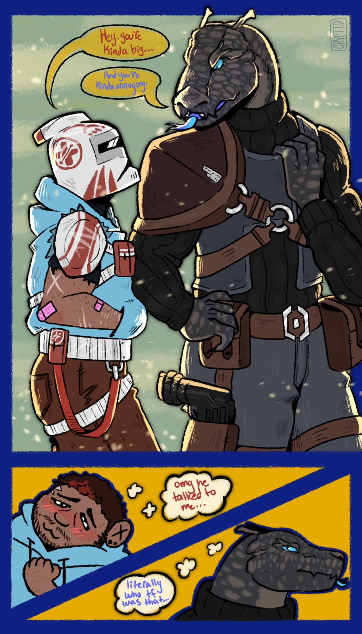 He struggled with feeling useless, and while his brothers are just happy one of their own is safe with them, fed and warm, they see his struggle and he is gently guided into the medbay, where he is handed a pair of gloves and bandages. He dedicated everything he has to it. He can still protect his brothers, even though it looks different than before.